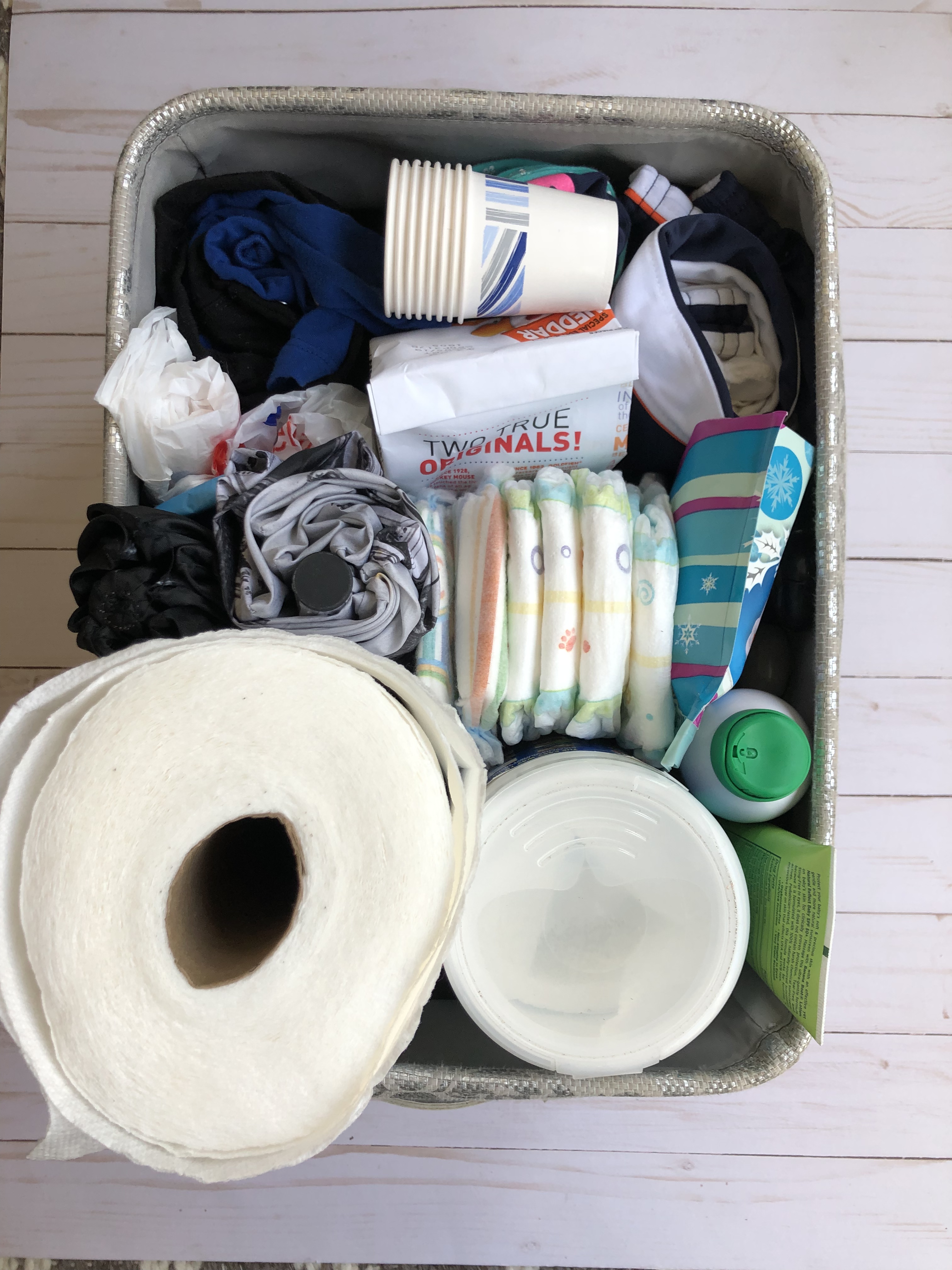 1. Full change of weather appropriate clothes for each kid including socks and underpants. (Pro-tip, pick clothes that are a size too big or outfits that they would not otherwise wear so as to not “waste” an outfit sitting in the car *hopefully* a whole season)
