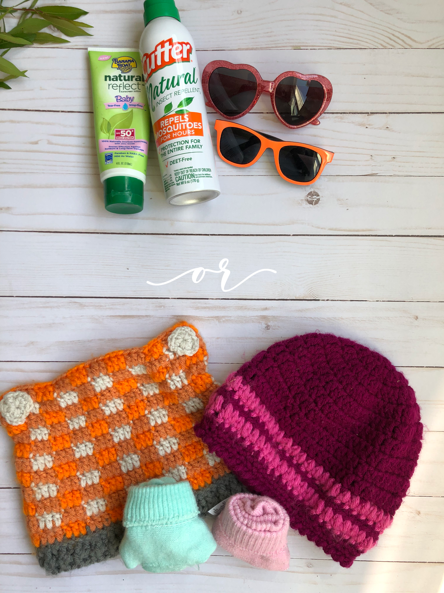 9. Depending on the season- sunscreen, bug spray, extra mittens, extra hats.