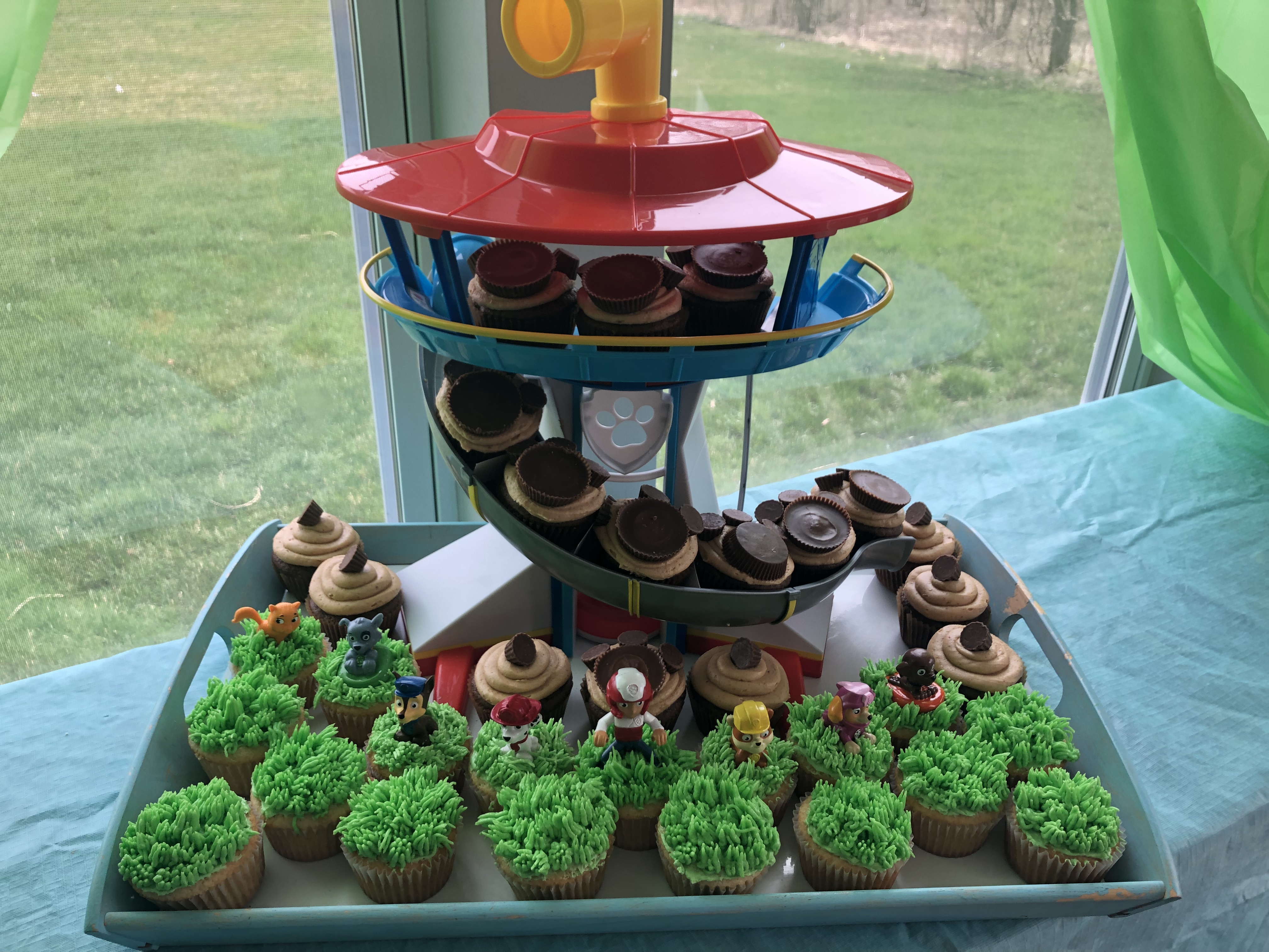 As previously stated, I like to think outside the box! The Look Out Tower seemed like the perfect place to house Paw Patrol cupcakes! They fit perfectly and they looked adorable!