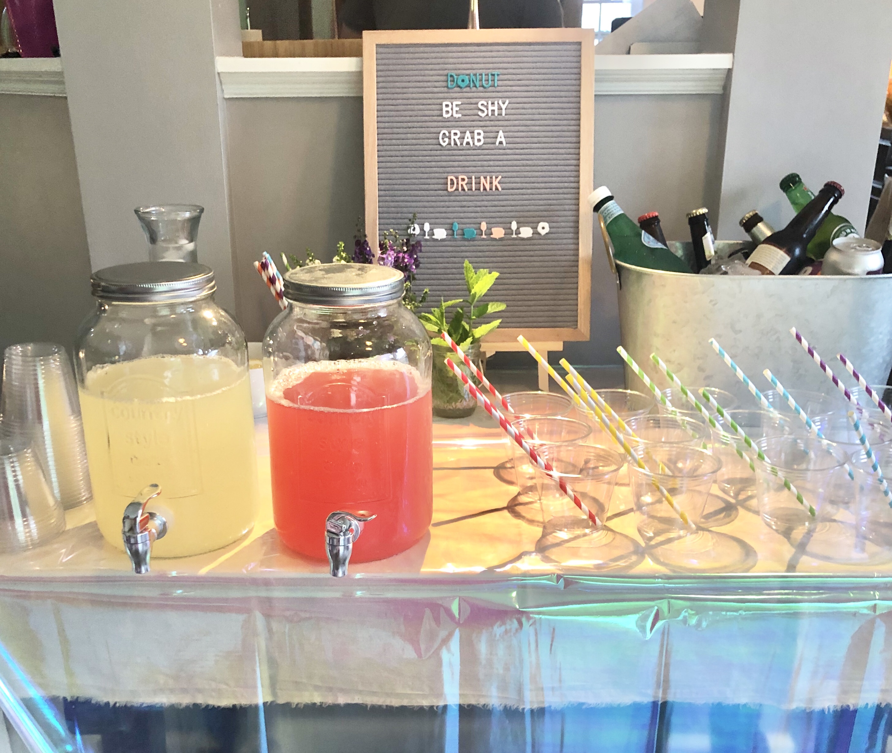 Donut be shy, grab a drink! A party just wouldn’t be a party without colorful paper straws to match our theme! Giselle picked the beautiful potted purple blooms for her big day. I love how they add color to our drink table!