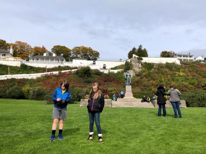 Once to the island, it is tradition to hang out in the green space/park in front of Fort Michilimackinac. Of all the beautiful sites and amazing things to do on Mackinac Island, one of my kids favorite things to do is just run around the grass here. There is a very nice play ground at the top of the park right below the Fort, but sometimes you just can’t beat running in an open area. Haha.