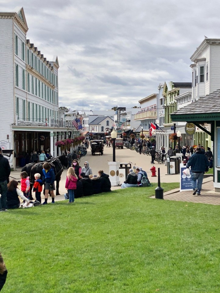 It is in our tradition that we spend one day on Mackinac Island. After we eat breakfast at the cabins, we pack snacks and backpacks and drive into town where we catch Sheplers Ferry to the island. It is true that there are cheaper options, but a little insider info for you, they have the best schedules as far as availability to take you back and forth to the island. We enjoy the flexibility to make all the plans we like and can still find departures that suit us.