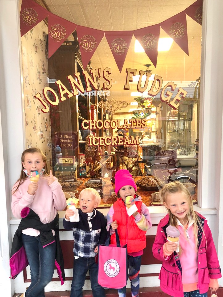 It’s not a trip to Mackinac if you don’t get some fudge! There are lots of lovely and beautiful fudge and sweet shops on the island. The locals all say that Joann’s is the best so truthfully, we’ve never even tried anywhere else. We love it. It’s our favorite. And even on years when the weather is in the 40s, our kids insist on getting some of the best ice cream that’s ever existed. Maybe it’s because it’s made in house…? It truly is amazing. I recommend what should be the obvious choice: Mackinac Island Fudge. Of course, my kids love anything with excessive amounts of food coloring! It’s tradition that Grandpa’s favorite way to spoil his grandkids is with ice cream. It’s their thing.