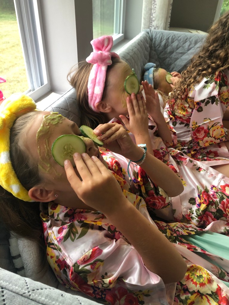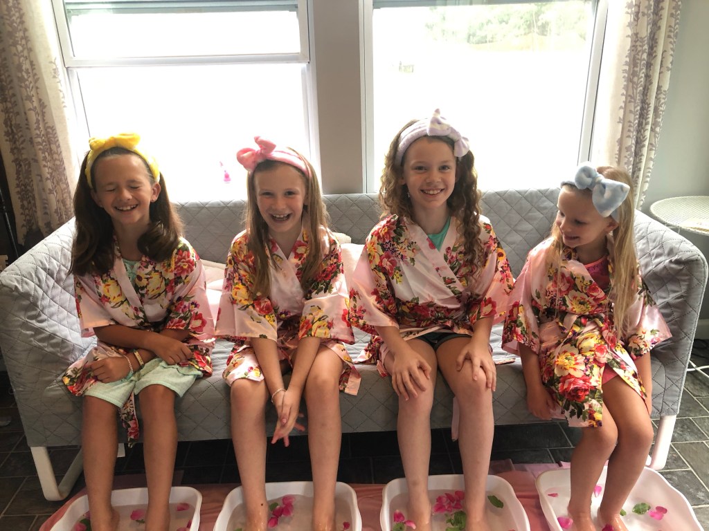Our crew LOVES us a good birthday party! Annabelle especially is my little party planning-mini. She starts prepping for her birthdays at least six months in advanced, although preparations for “next year” generally start the day after her party. Girlfriend loves a themed party. We decided to keep things on the small end, partially to keep things easy in light of other chaos and regulations but also easy from a logistical friend end. I allowed Annabelle to invite two friends to celebrate with and she chose a couple of her besties from dance. And being in true mom fashion, I forced her to include her little sister. She chose a spa theme and we had a lot of fun with it!