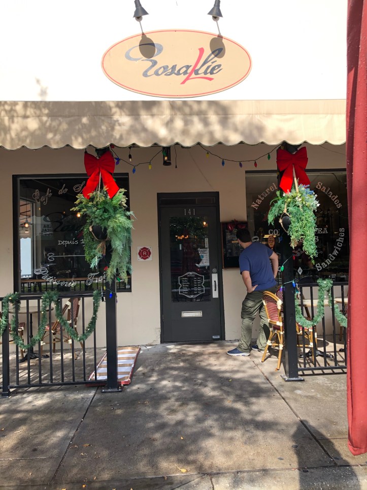 One of my favorite things about being married to a German is the standard practice of having an afternoon coffee and pastry sometime between lunch and dinner. On vacation, I could really get by with brunch, coffee stop, and dinner. Lucky for us, the Orlando area has no shortage of patisseries, cafes, and cutie little bakeries. During our stroll in town we enjoyed a stop into Rosallie Le French Cafe.