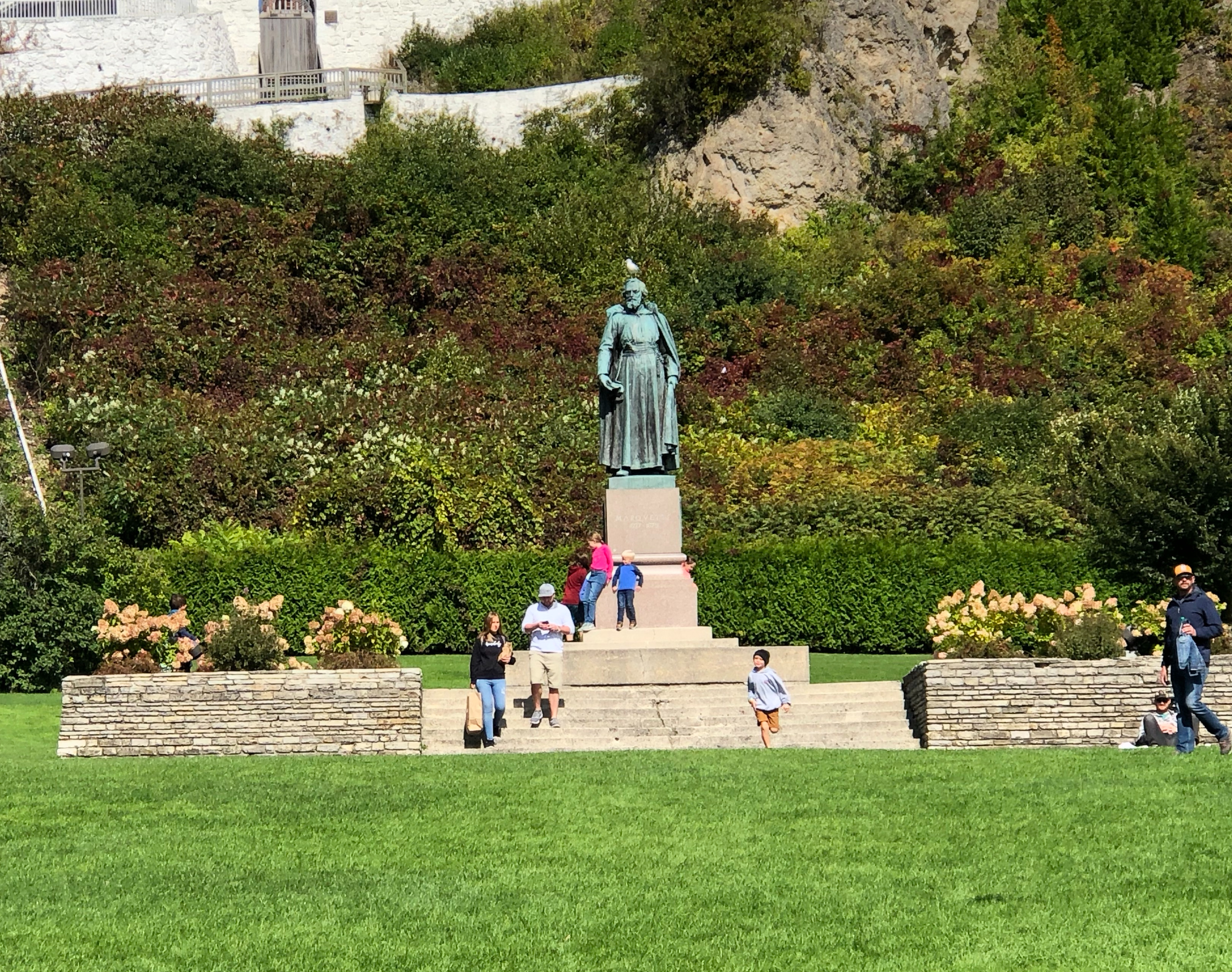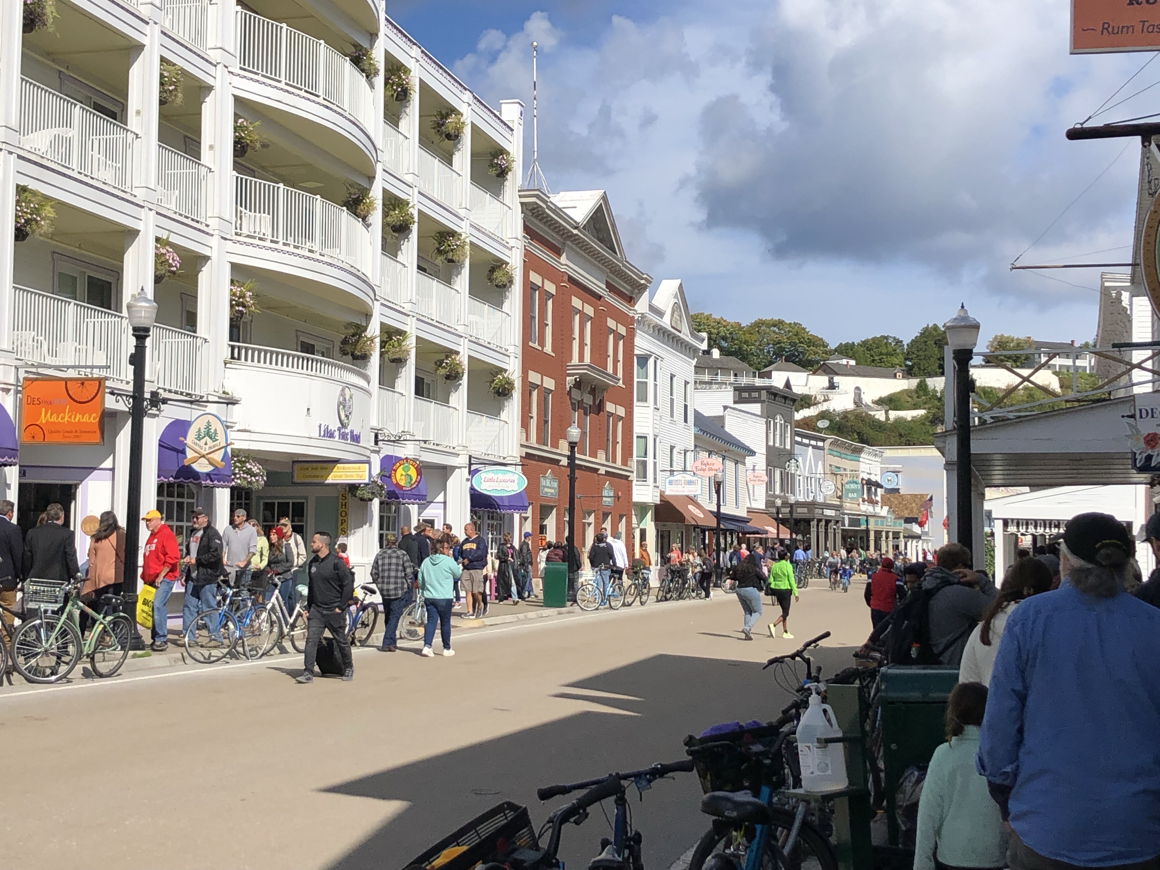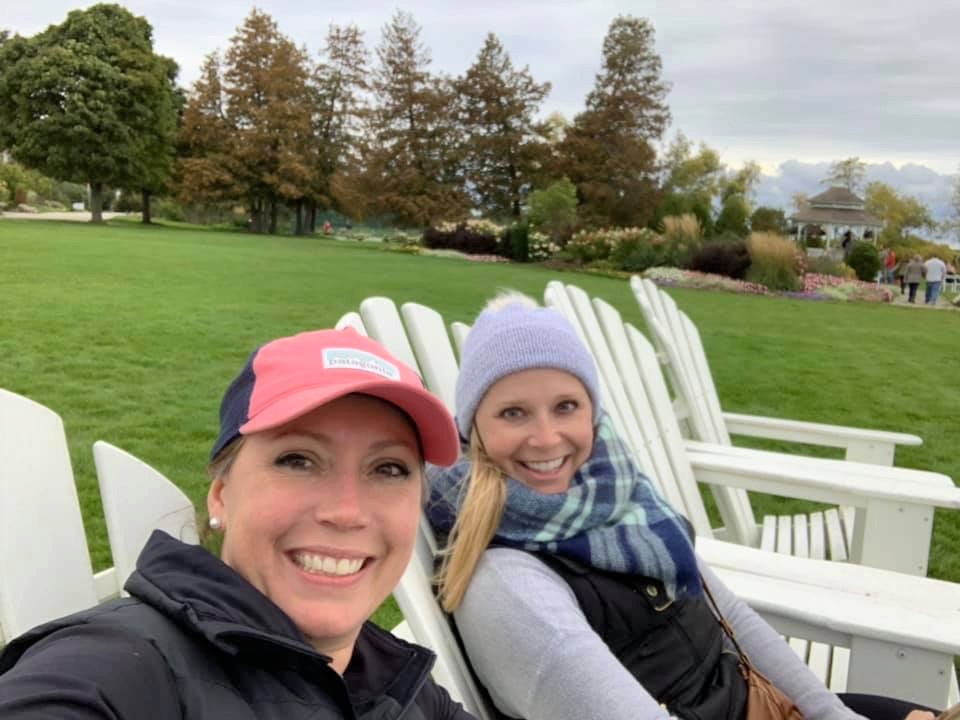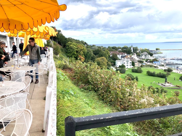 After our tedious decent, we walked the outer roadway back into town. If you need a pitstop on your trek, I recommend checking out the lawn in front of Mission Point resort on the east side of the island. There are adirondack chairs-a-plenty. If you need a cool (or warm beverage) to enjoy your set, there is a cafe in the resort that is open *with nice clean restrooms*. We have stopped in there several times for chai tea lattes or just hot tea. It’s a less popular but definitely worth it pit stop on the island!