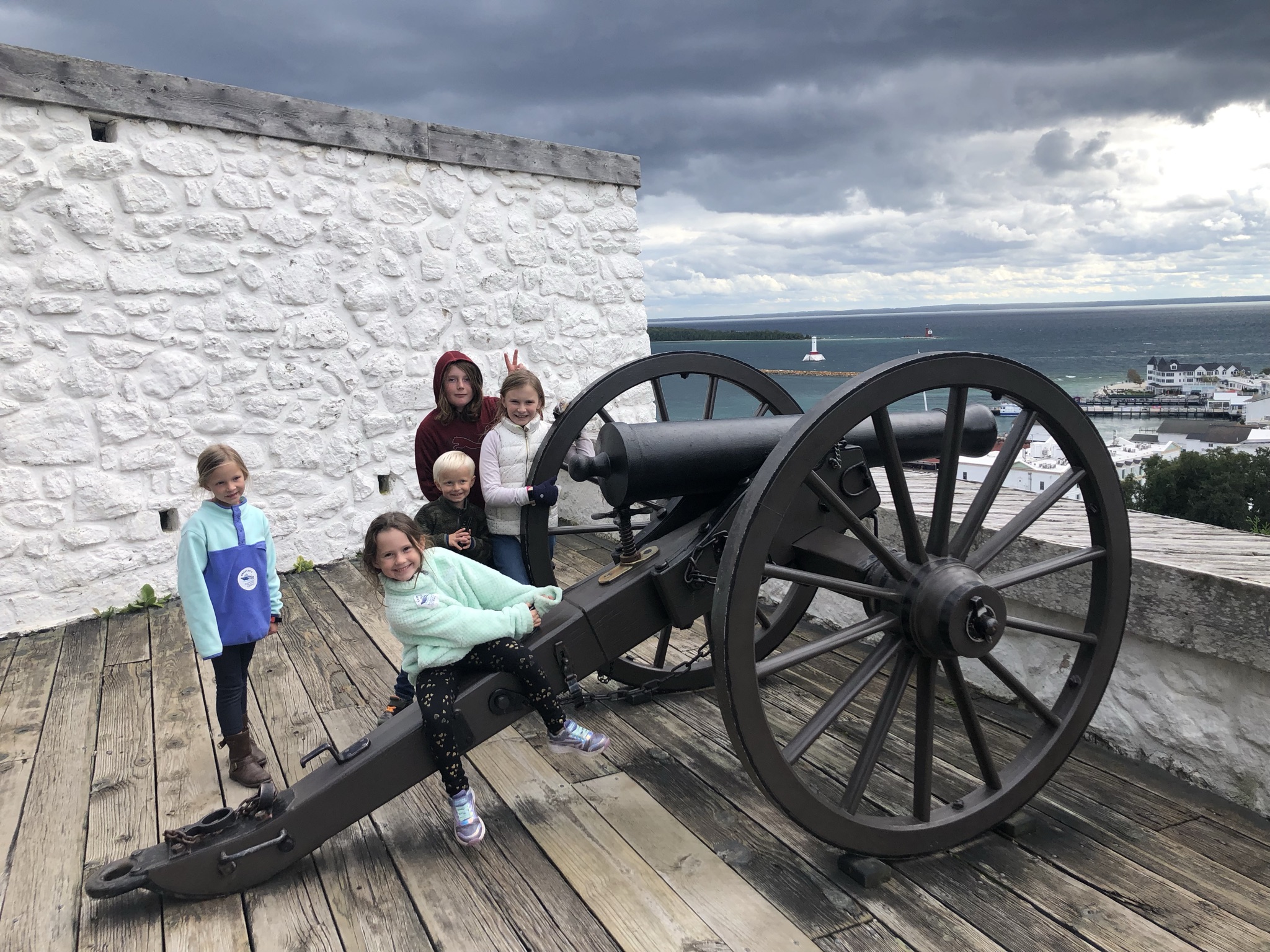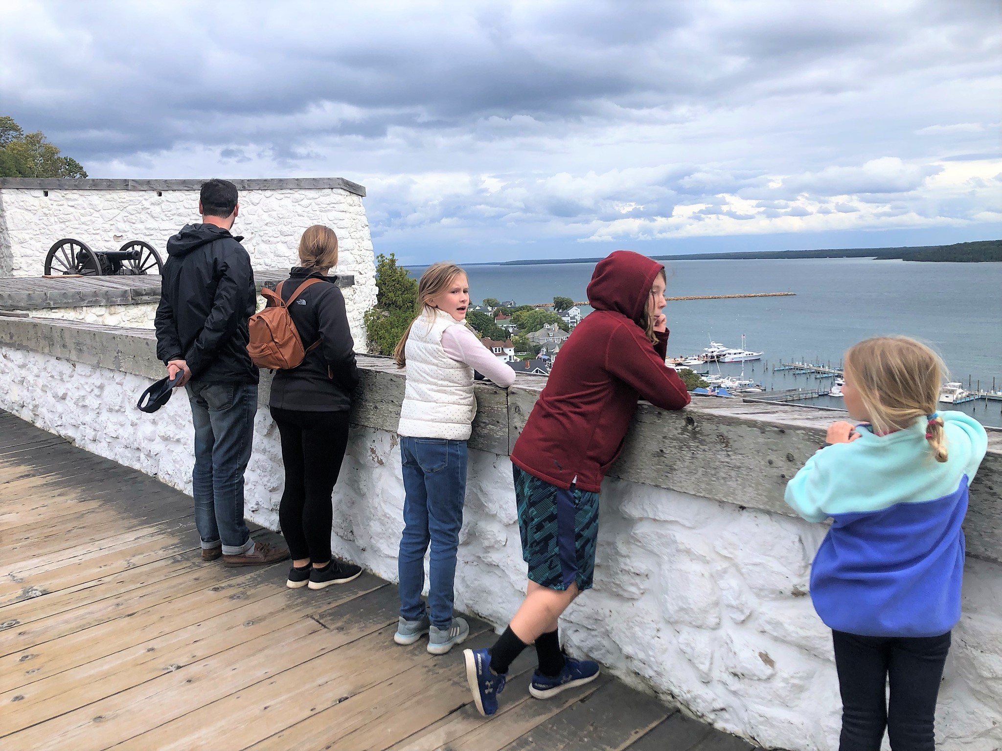 If you make a trip to Mackinac Island, I highly recommend spending some time at the fort. And if you make a trip to the fort, I highly recommend at least grabbing a glass of wine (or in my case lemonade) and taking in the beautiful views. Our family decided to take advantage of the situation and all enjoyed a meal in the Tea Room. It is operated by the Grand Hotel so while the food variety is not expansive, the offerings they do have are good. Erik and I enjoyed the flat bread pizza and Annabelle insisted that the kids mini burgers were some of the best she’s ever had. Sorry, I have no documentation of said burgers. You’ll just have to take my word for it!