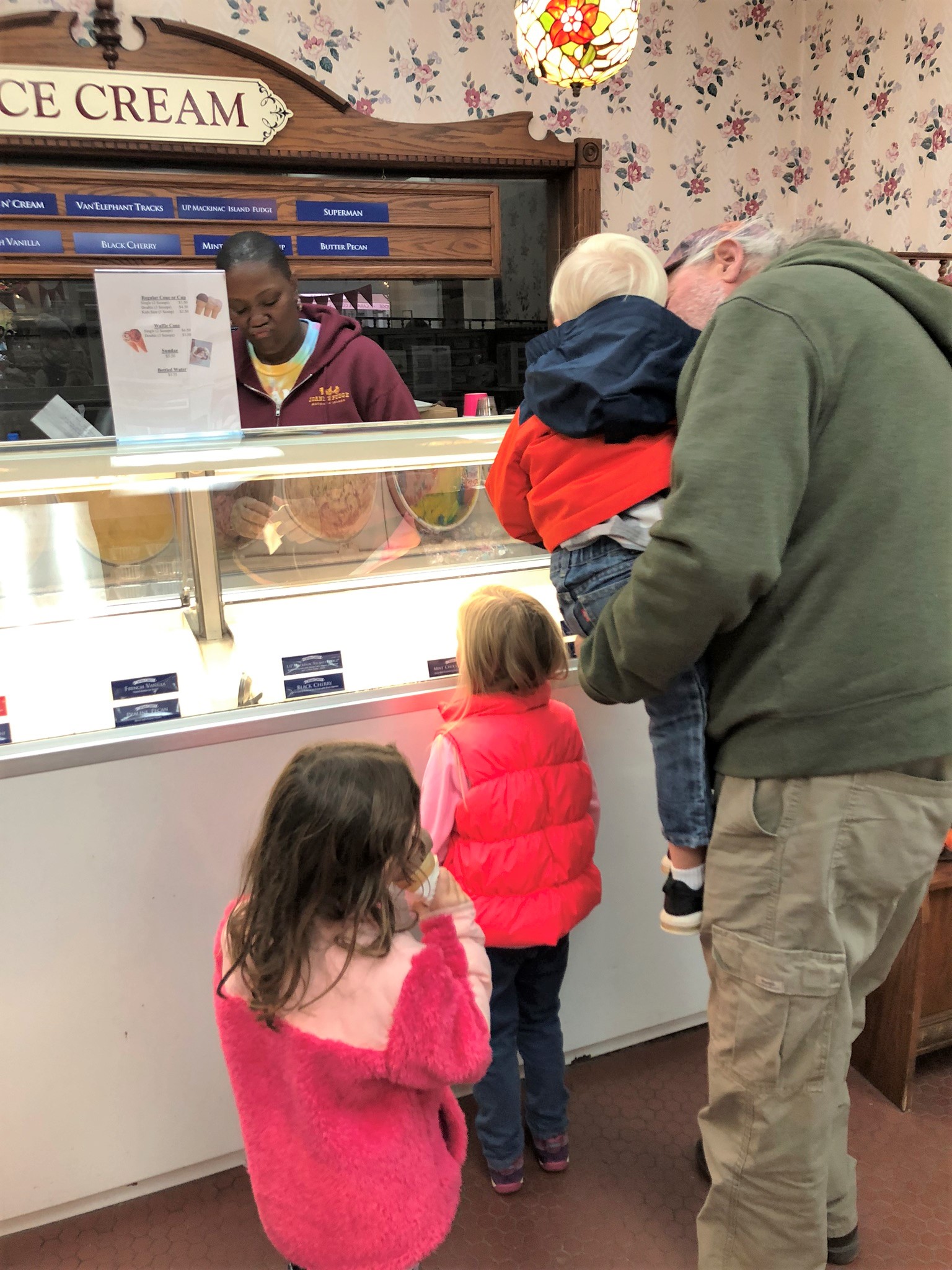 Once we arrived back in town, we did a little shopping at the girls new favorite spot on the island and then headed to our standard Joann’s Fudge where we all pick up goodies of fudge and ice cream cones. All the locals agree (and I’m pretty sure TripAdviser too) that it’s the best place and so we have never wanted to even try anywhere else. I always get a waffle cone of Mackinac Island Fudge ice cream – it’s a tradition that my dad treats the kiddos and grand-kiddos to said treat every year. It’s kind of our thing. Ice cream and fudge in tow we walk down to the ferry dock to catch the second to last ferry departing from Mackinac Island and usually at least one of the kids nods off in the bobbing waves on the ride back.