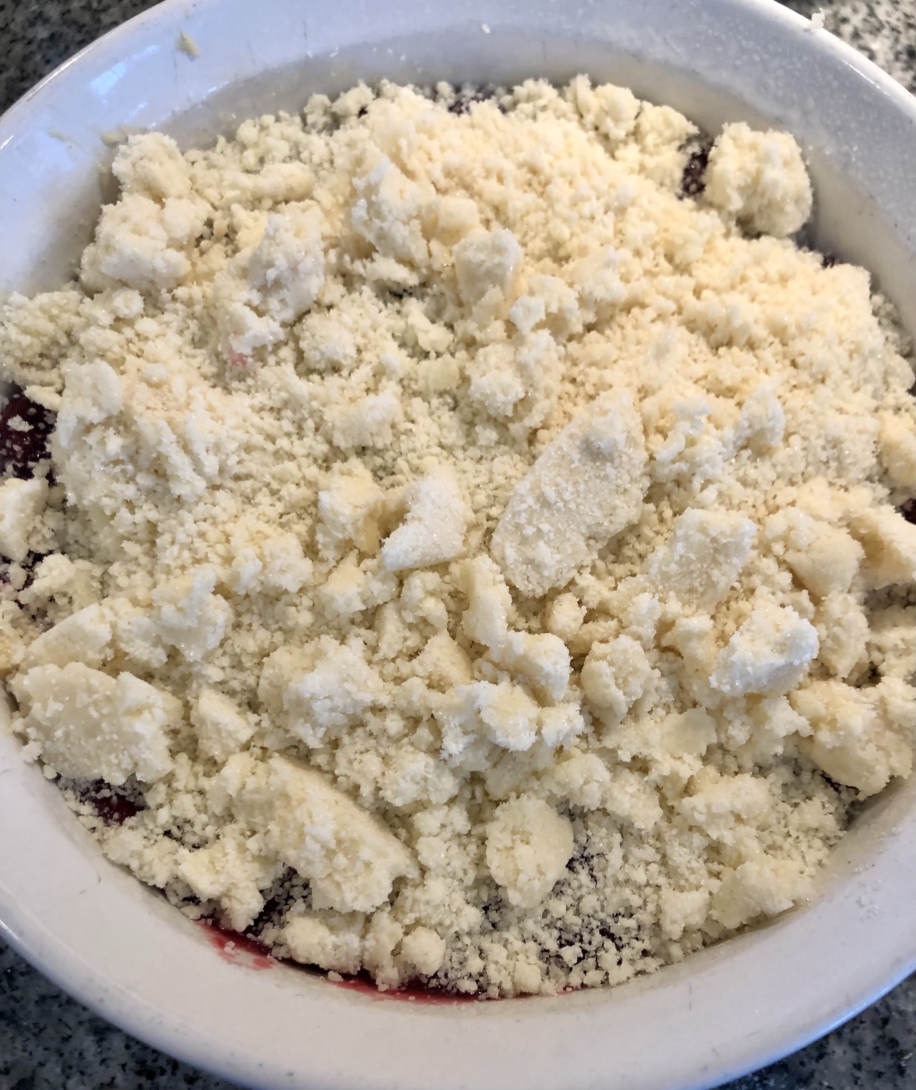 Sprinkle crumb topping over the cranberry sauce.