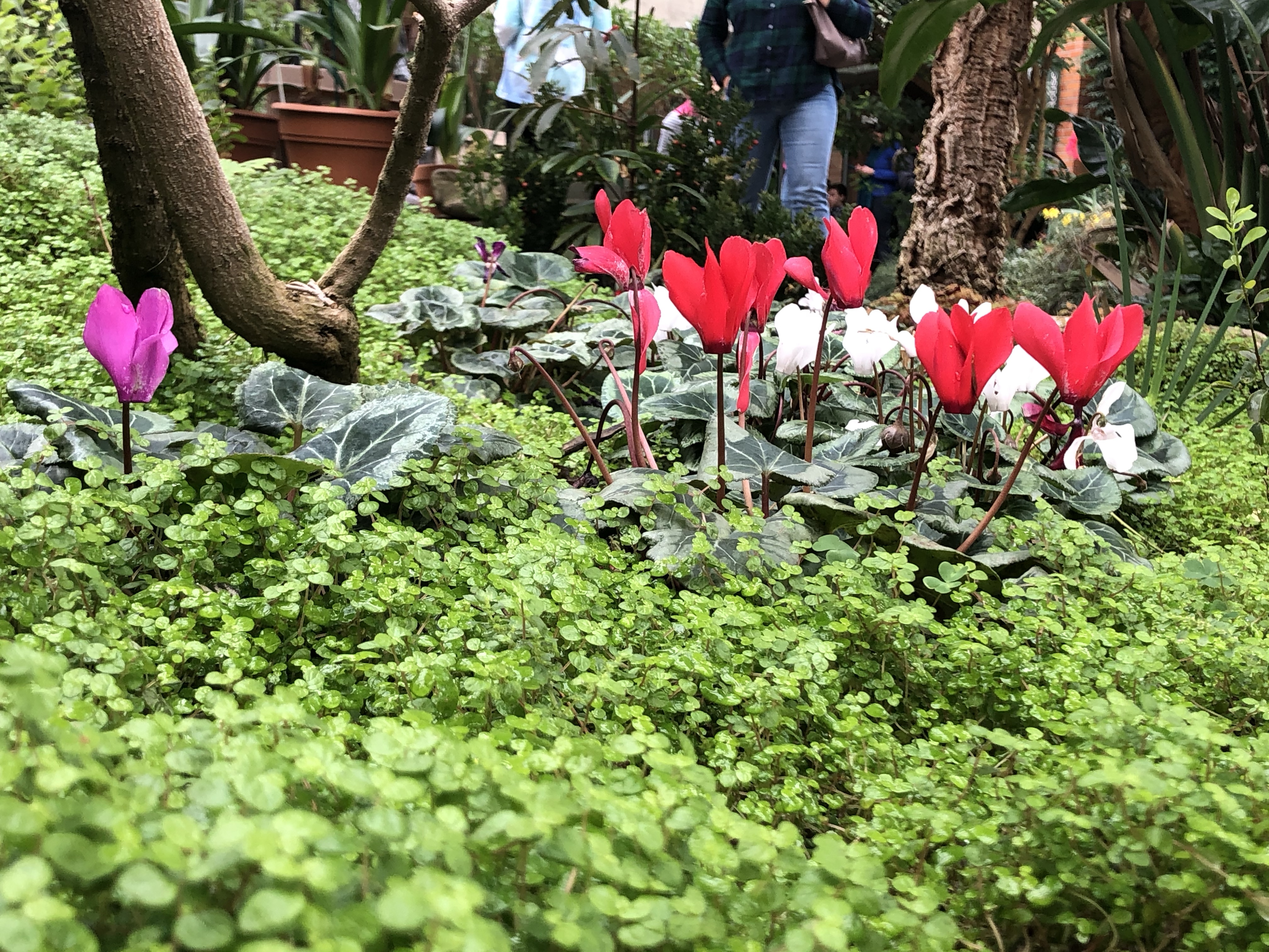 The best thing about a greenhouse and/or conservatory this time of year is not only the beautiful plants and greenery but the warmth. The temperature inside these places have to support all kinds of plants including tropical ones meaning near tropical temperatures. I may not be able to get my husband into a greenhouse any other time of the year, but during the winter- he’s ready to camp out for the day.