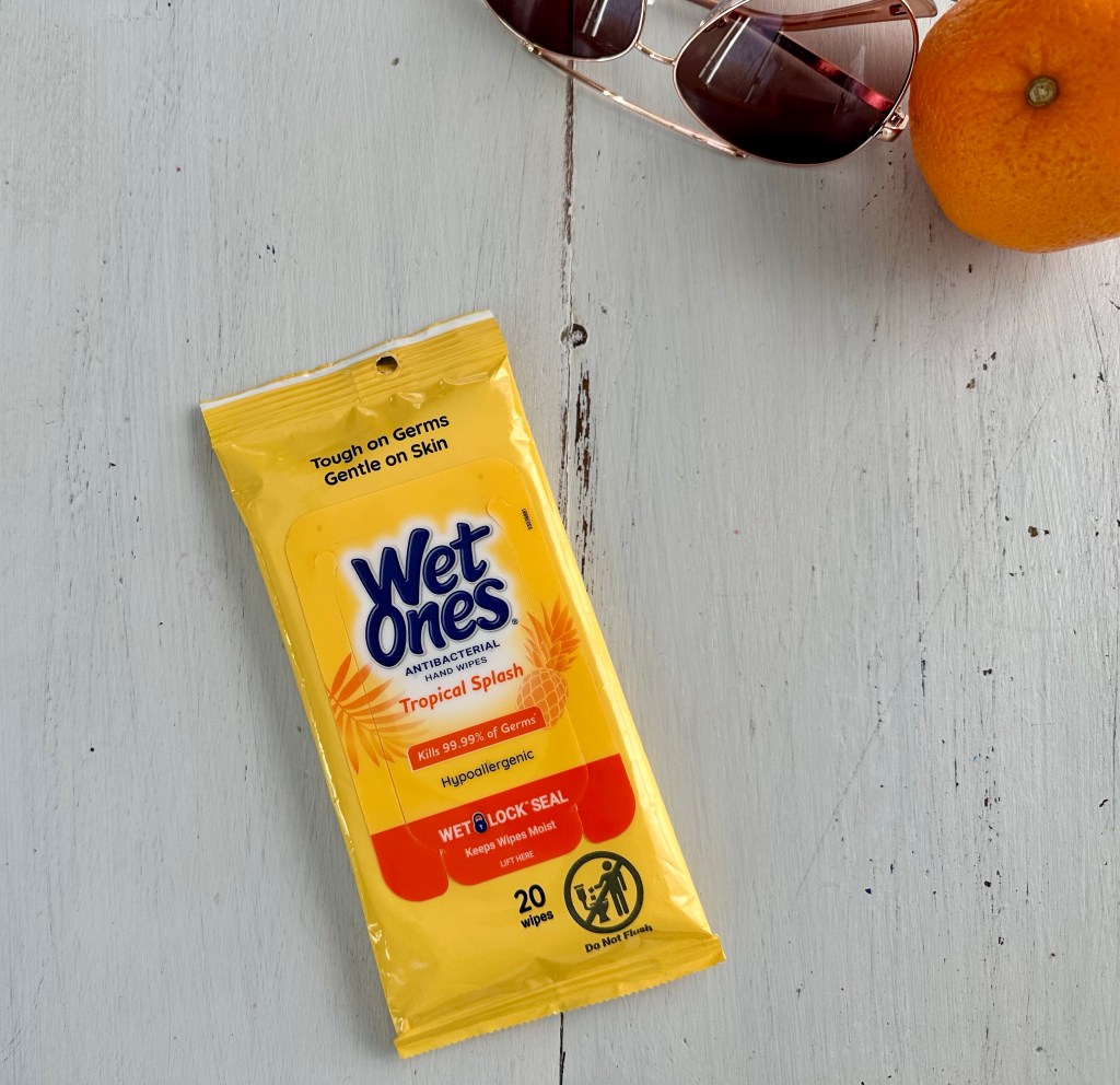 Usually, I travel with hand sanitizer, handy wipes, and Clorox wipes. This basically allows for me to be prepared for all kinds of gross scenarios. But if I could take only one of those items, it would hands down (no pun intended) be the sanitizing hand wipes. I use them to clean airplane tray tables, grocery cart handles, and give the stroller a quick wipe down. I like that they add an additional element of scrubbing that elevates them beyond hand sanitizer. If your kids have ever scrubbed up with one after playground time – you’ll understand.